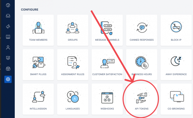 1) Sign in to FreshChat, and go to Settings --> API Tokens
