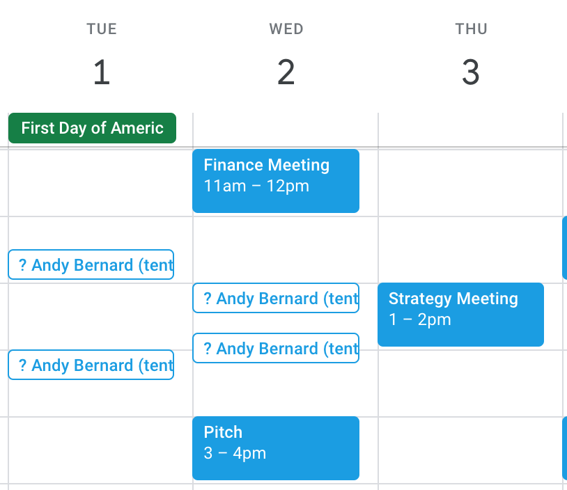 Sure, Arrangr works great even when your recipient has never heard of Arrangr, but it is even more seamless when both parties have set up Arrangr accounts. You’ll be able to see their busy times blocked off in red overlaid against your schedule, so you can easily suggest times when you’re both likely to be available. Plus, Arrangr will automatically know their timezone and will be able to more seamlessly put the event in their calendar for them when they accept.